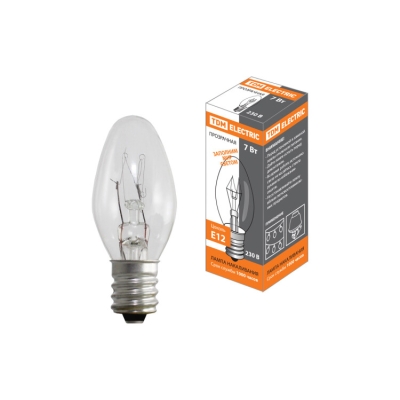 Лампа накаливания "Свеча мини прозрачная" 7 Вт-230 В-50 Гц-Е12, SQ0332-0054
