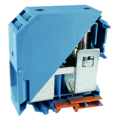 Проходная клемма, тип фиксации провода: винтовой, номинальное сечение: 240 мм кв., 415A, 1000V, ширина: 37,6 мм, цвет: синий, тип монтажа: DIN35