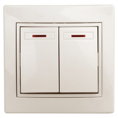 1-105-02 Выключатель двойной с подсветкой, 10А-250В, IP20, СУ, Plano, сл.кость (10/200/2400) Б0027604